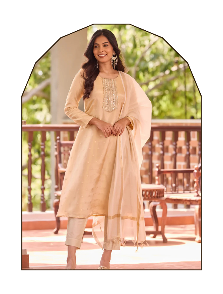 Cafe Gowns Ready to wear Chanderi Kurti sets (Plazzo pant)