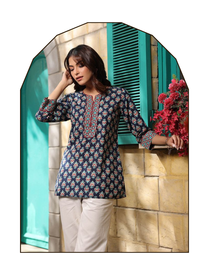 Premium Floral Printed Cotton Co-Ord Set for Women | Stylish Kurti & Pant Set