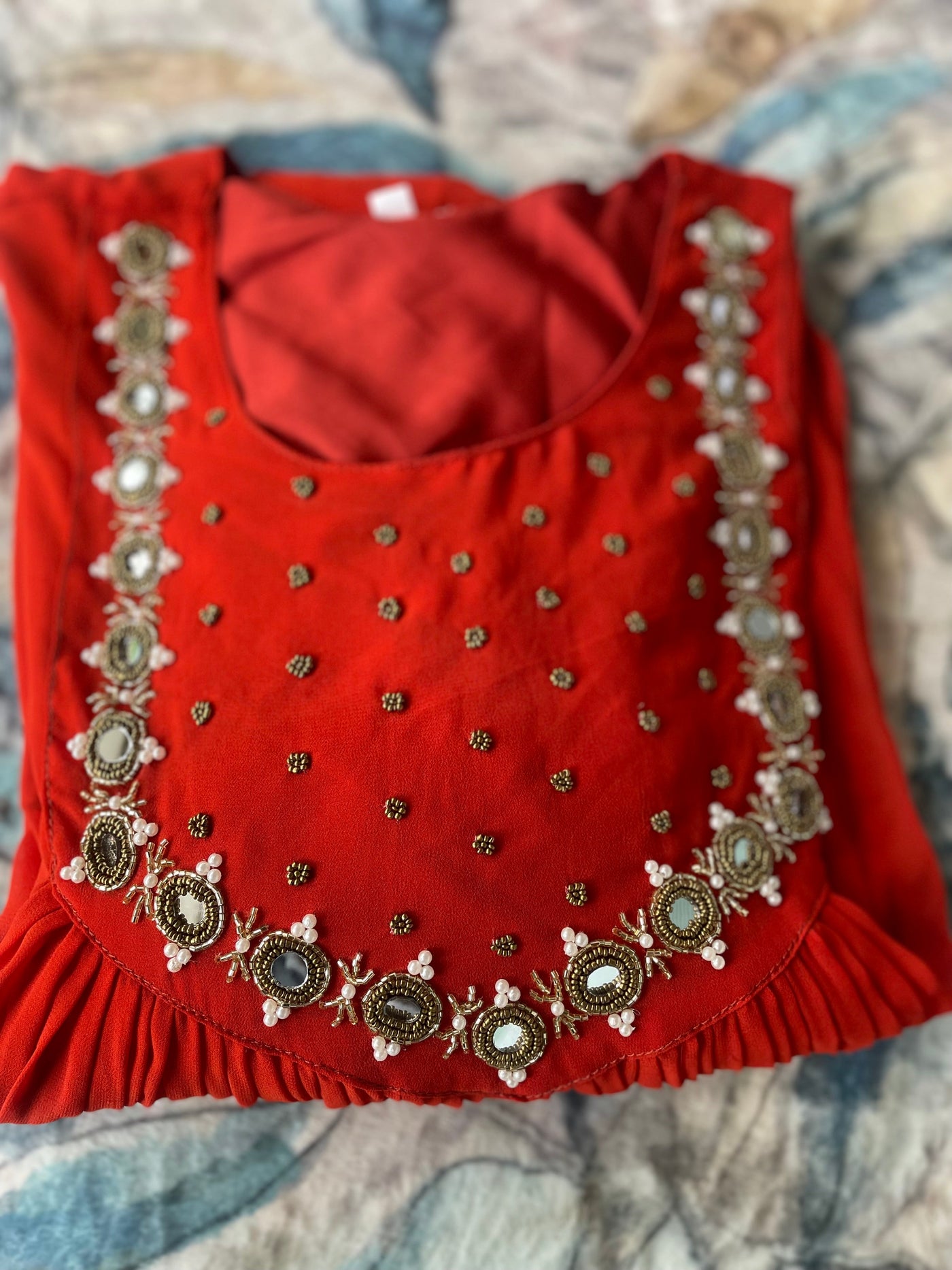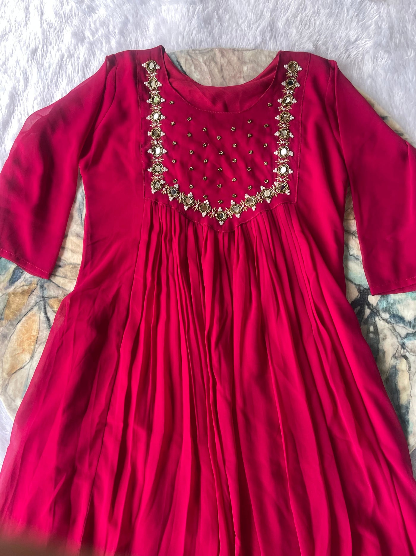 Mirror, mirror on the wall, who’s the most stylish of them all? 🤩✨ Introducing our stunning blooming georgette kurti with...