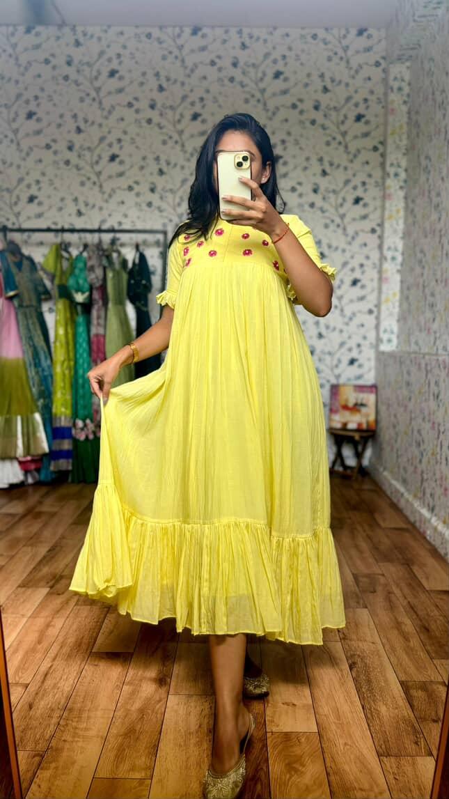 🌼 Mul Cotton Edition – Yellow Yellow Magic! 💛Step into comfort and charm with this pastel yellow beauty crafted from...