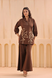 Coffee Chic Flamingo Pattern Cotton Co-ord Set