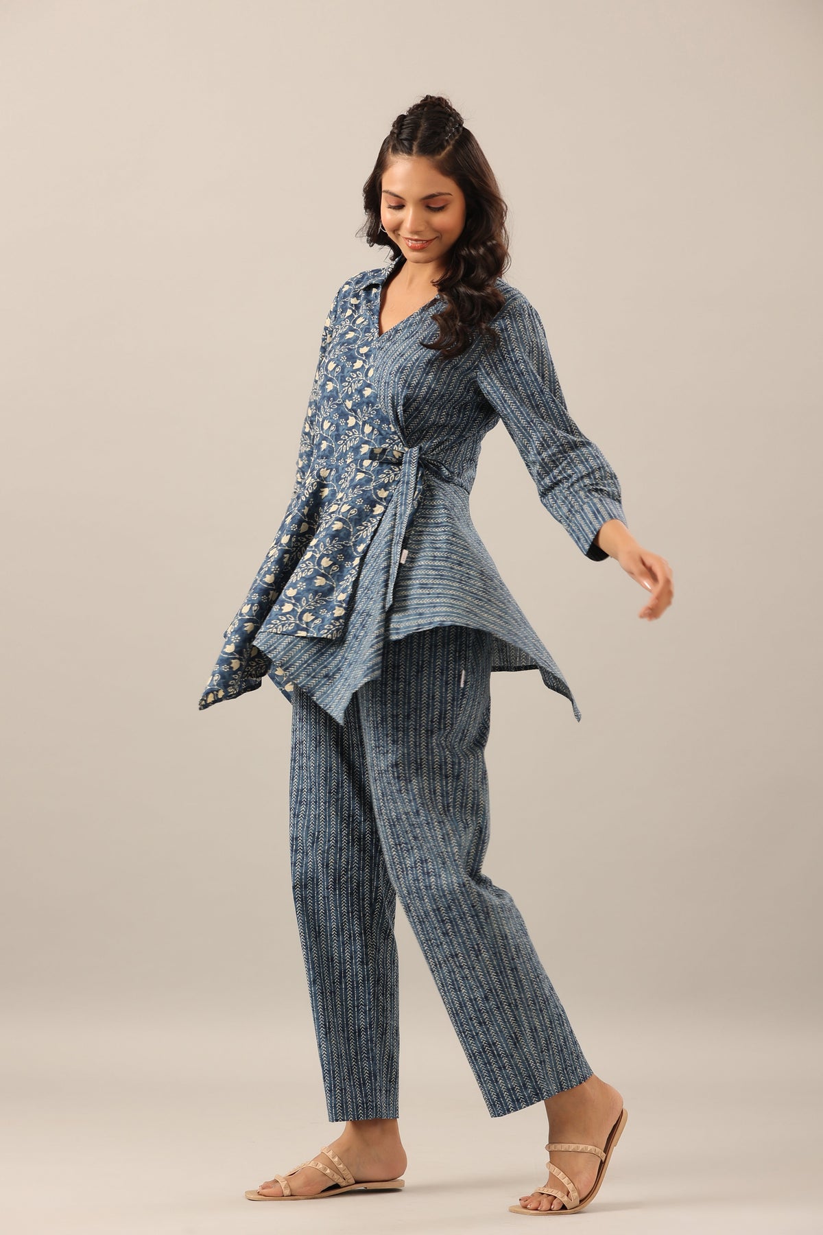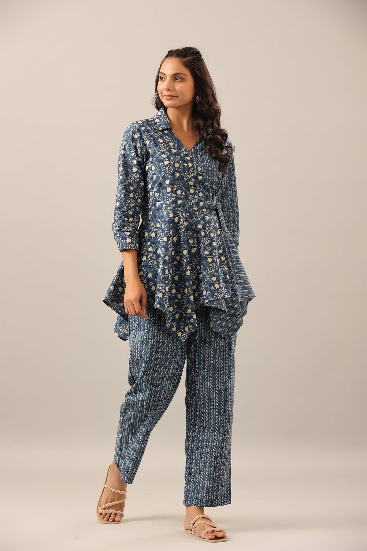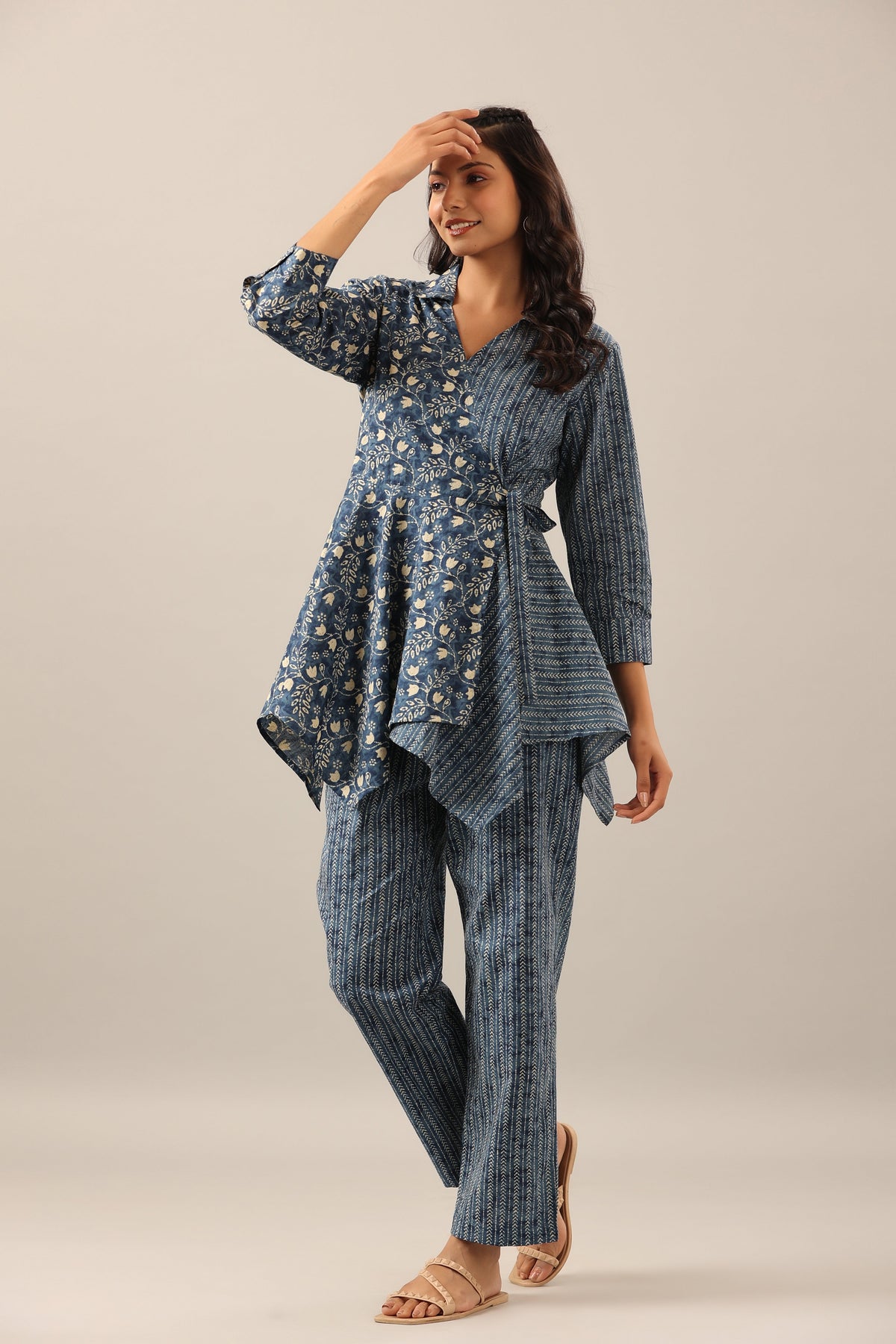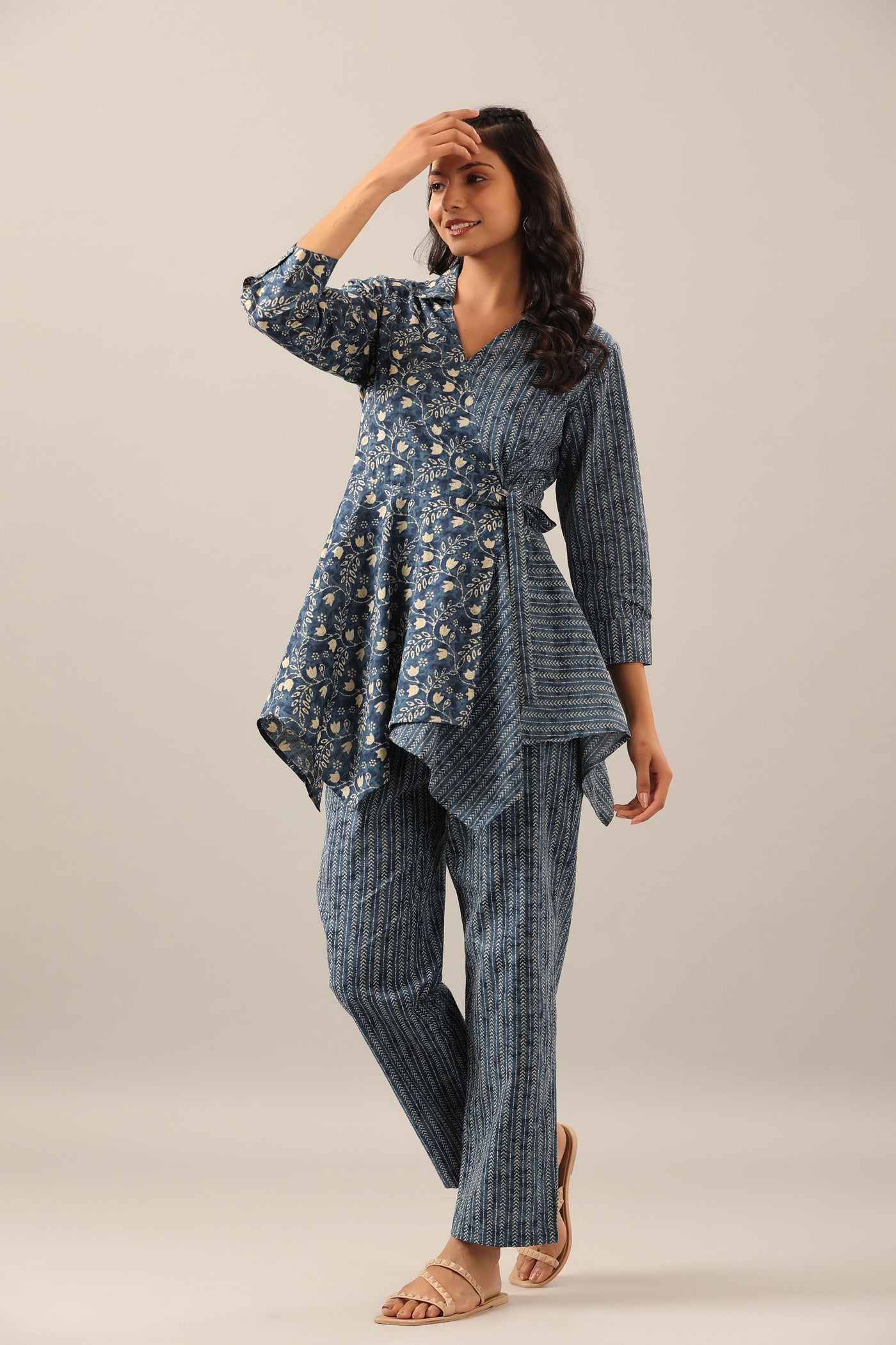 This Dainty Florals with Arrows on Blue Cotton Co-ord Set is a lovely addition to any wardrobe. It features delicate...