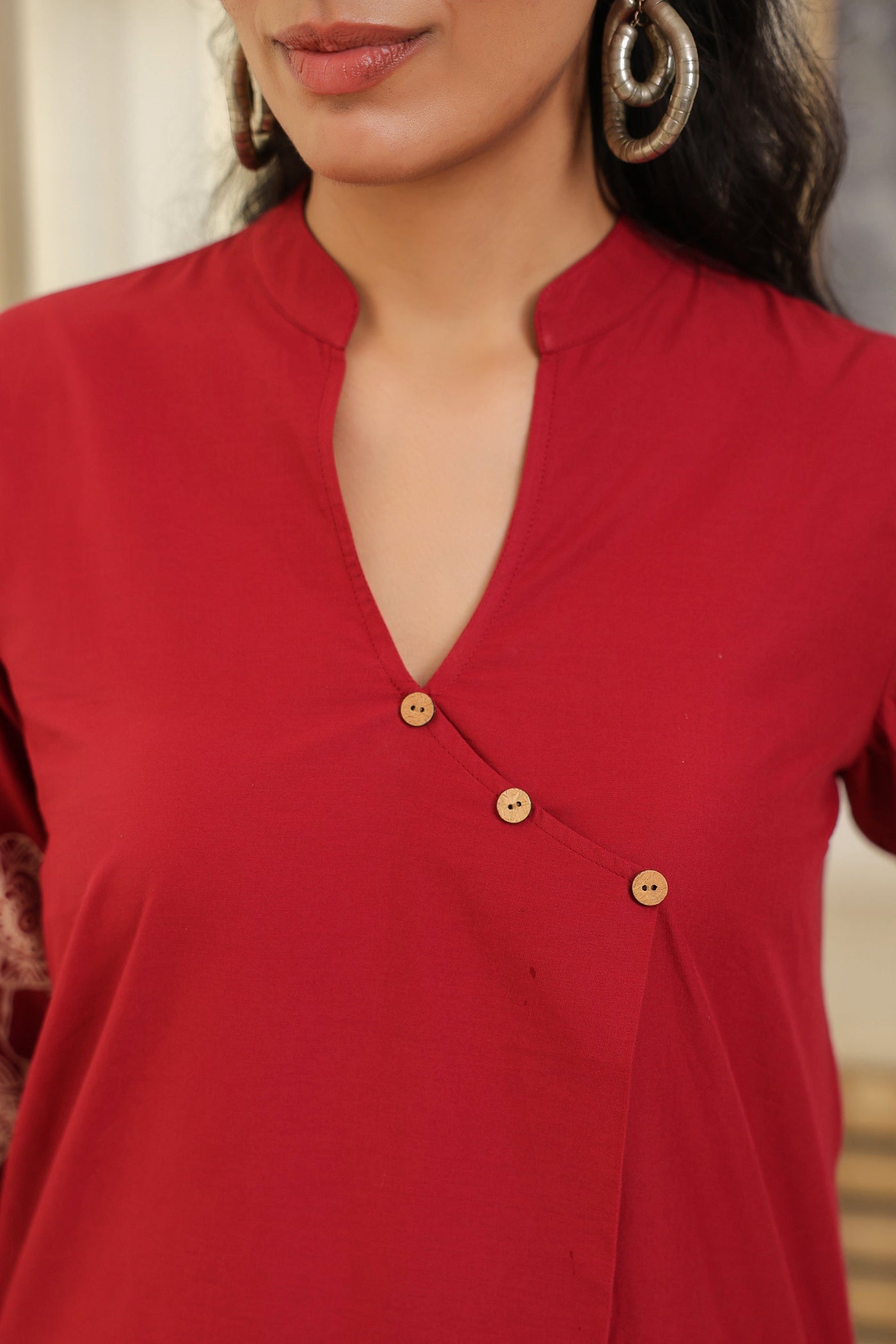 Step into effortless charm with this Red Floral Border Printed Cotton Co-ord Set. Crafted from breathable cotton, it keeps you...