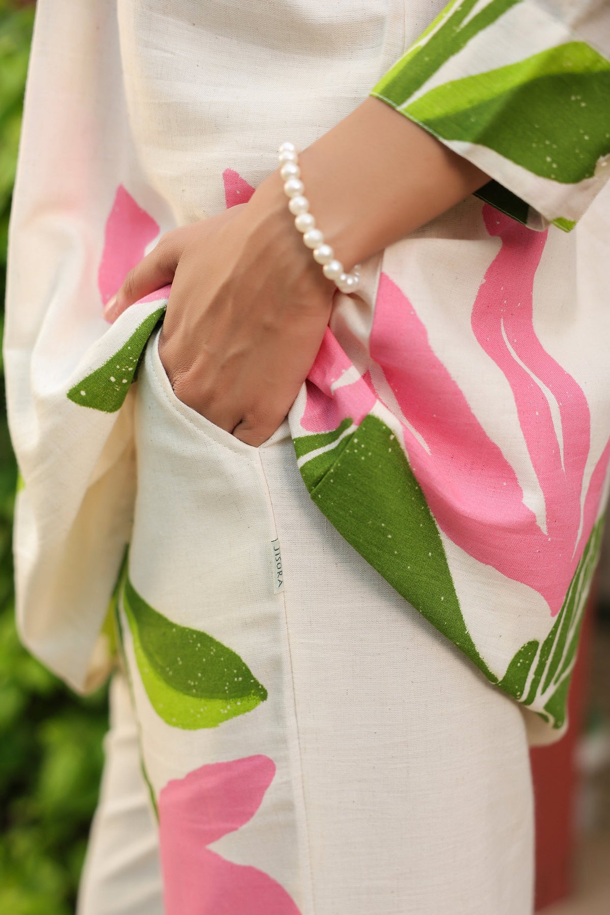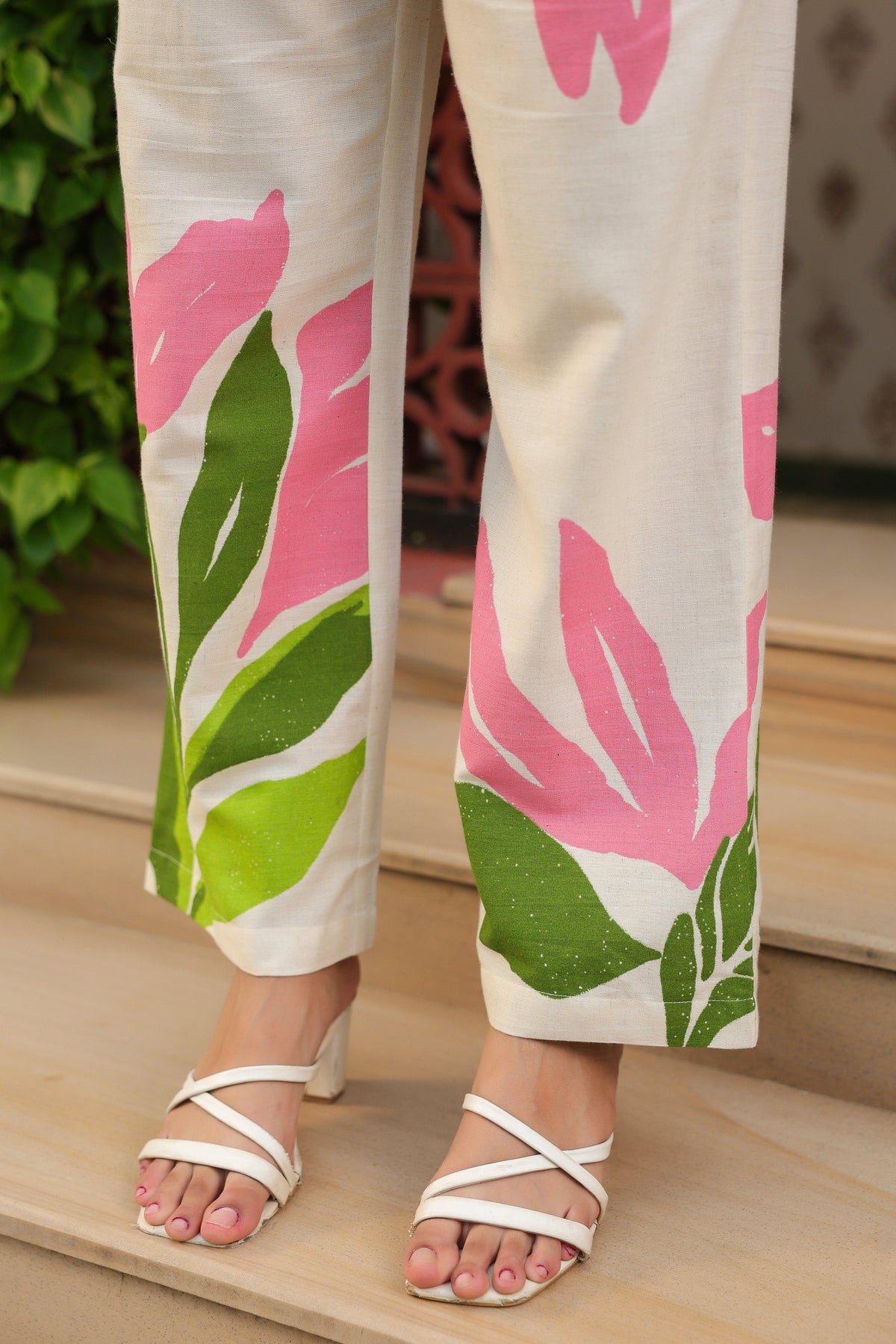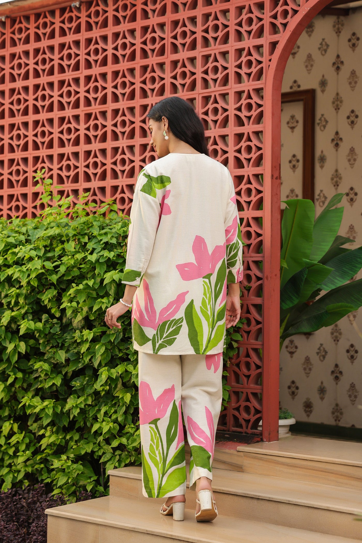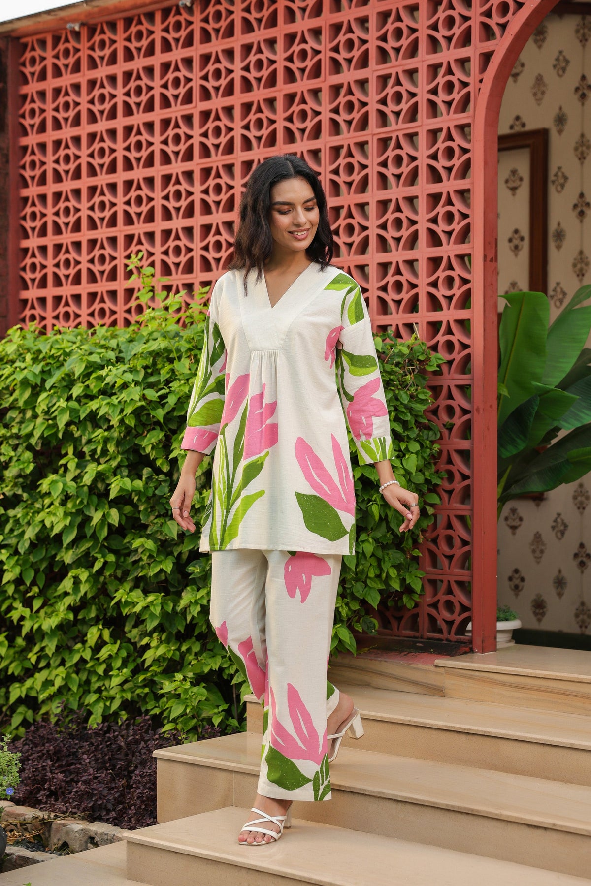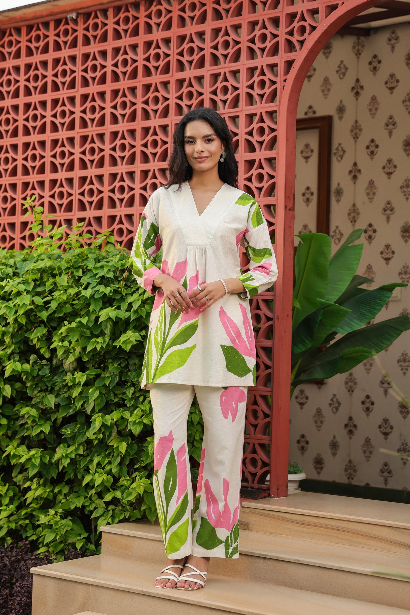 Elegant Blush Floral Printed Cotton Flex Co-ord Set