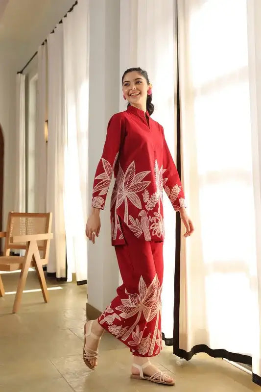 Unleash your vibrant side with our Flame Kissed Florals Cotton Co ord Set! This playful set features a bold floral...