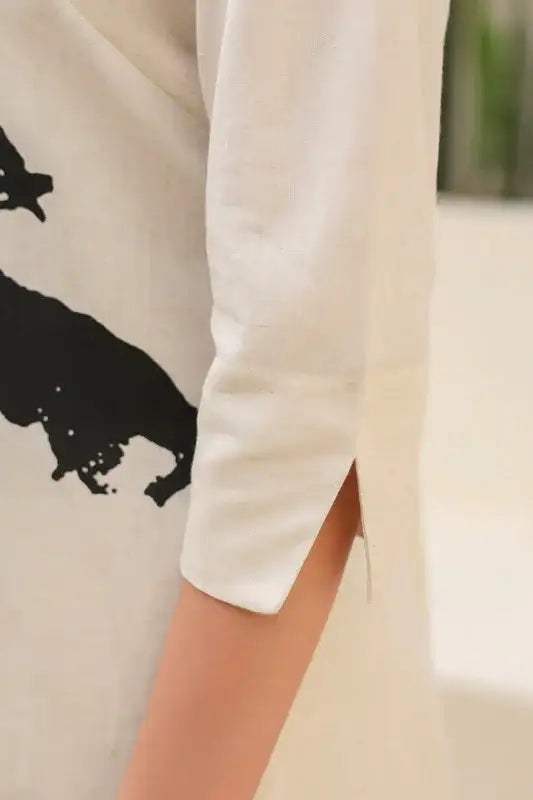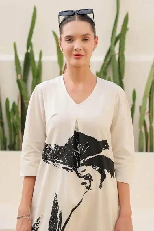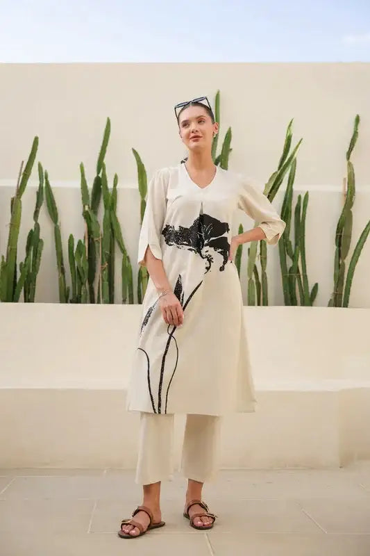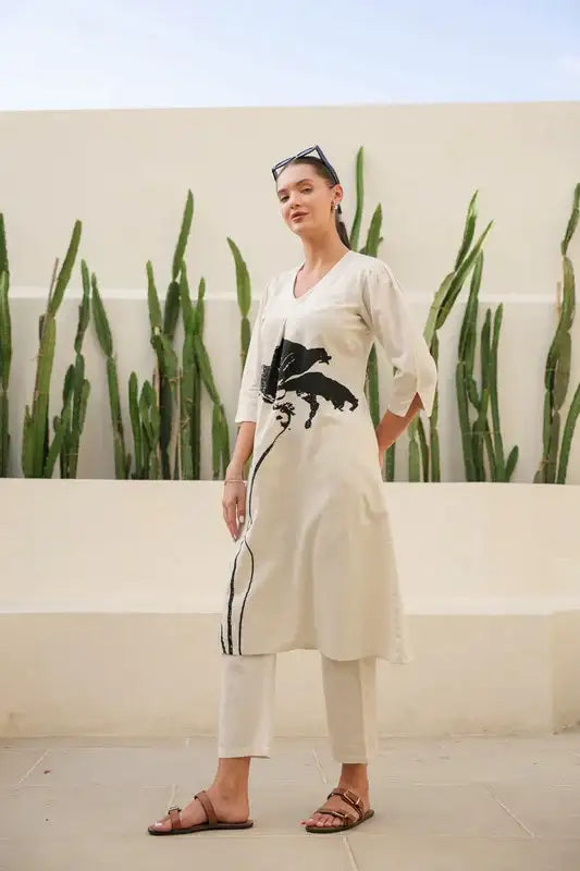 Floral Black & Beige Printed Cotton Flex Long Co-ord Set