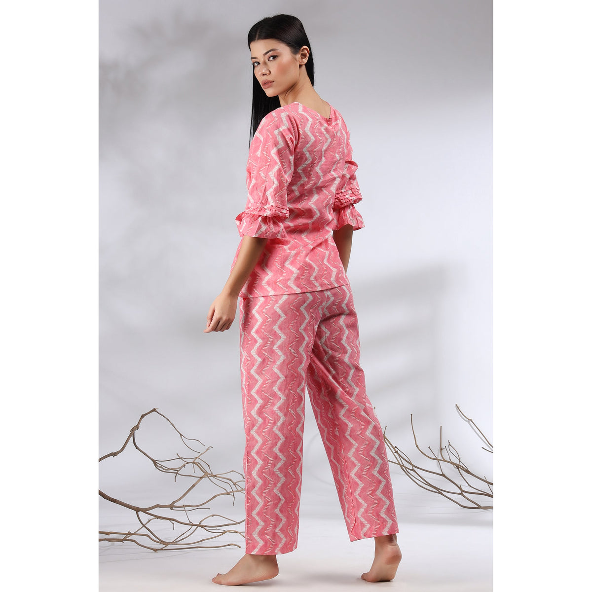 Glitched Stripes with Front Knot Top on Pink Cotton Co-ord Set - XS