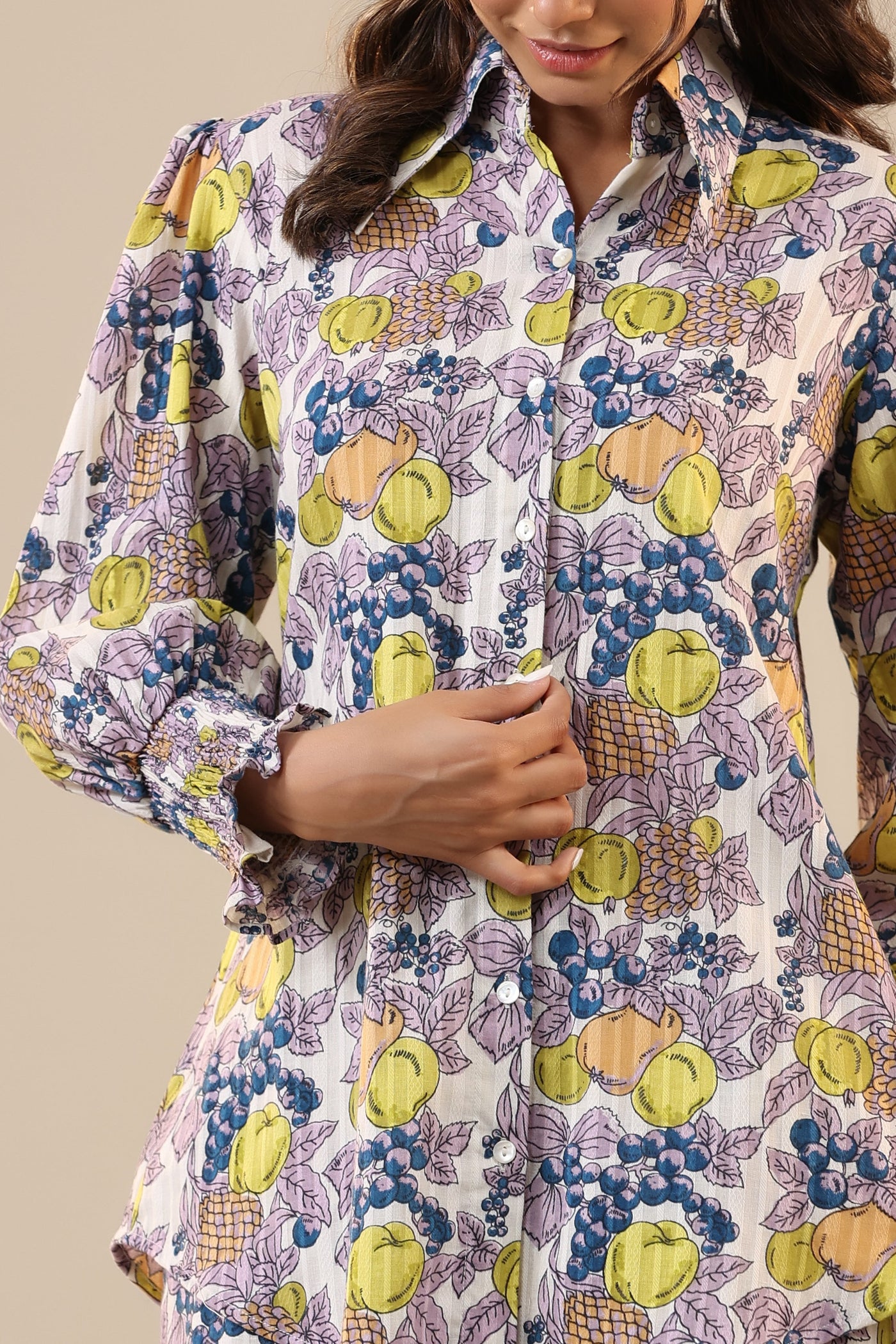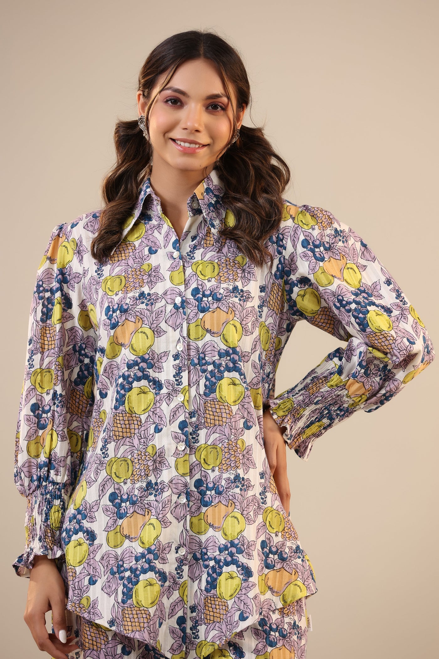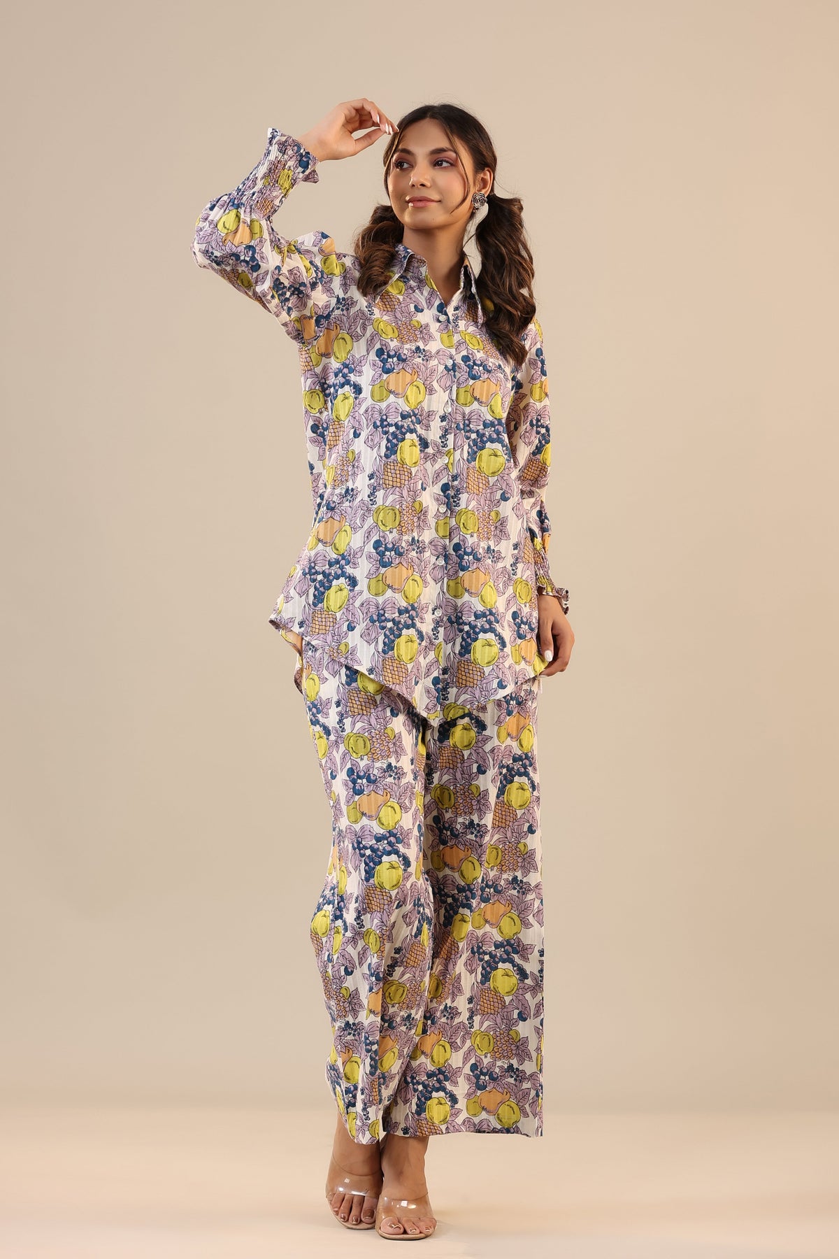 Lemon Pansy Cotton Collared Co-ord Set - XS