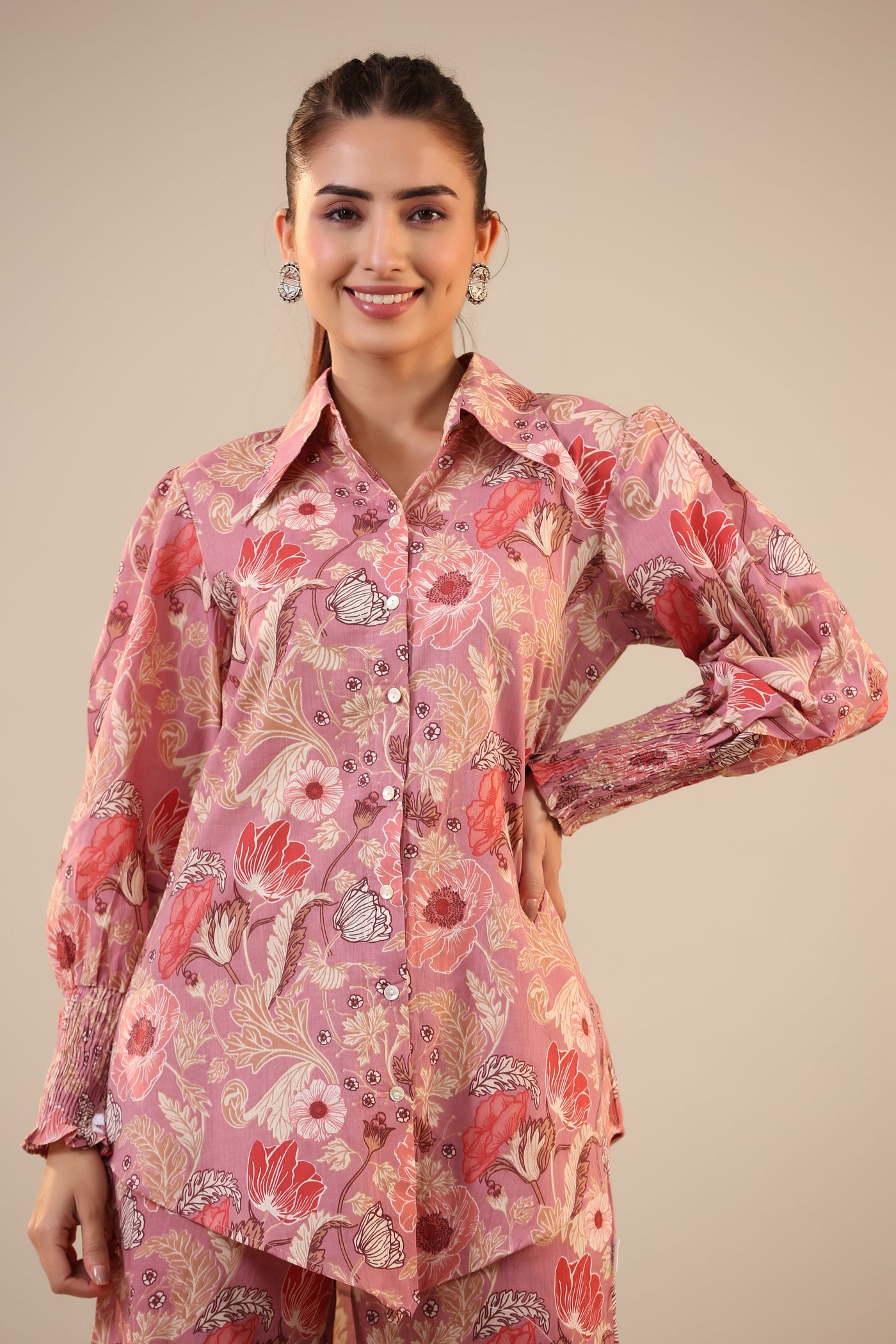 Lilac Cotton Collared Cotton Co-ord Set - XS