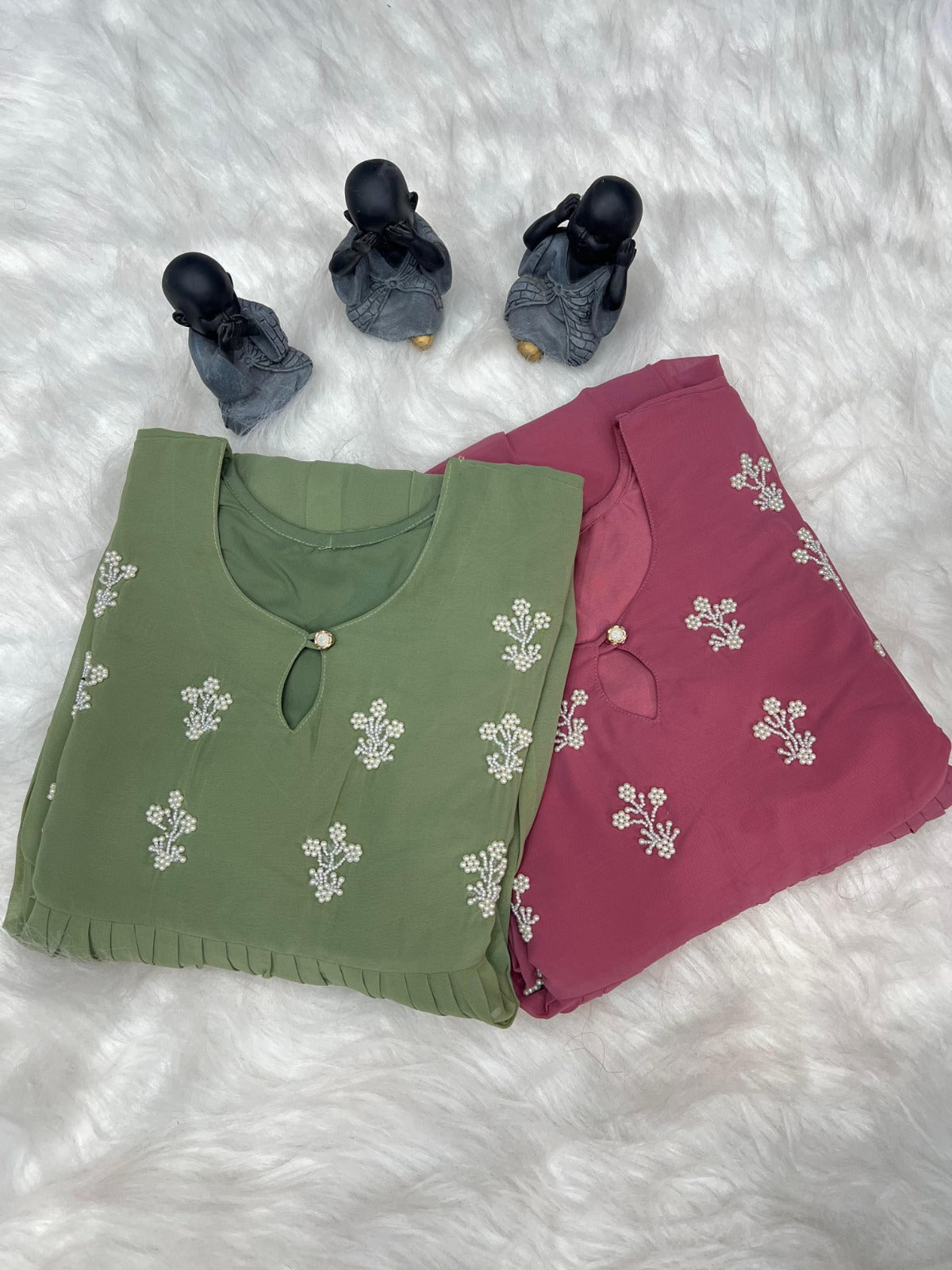 ✨*Maggam work Kurti Collection* ✨✨FABRIC - BLOOMING GEORGETTE KURTI WITH BEAUTIFUL NECK AND DESIGNER SLEEVES WITH HANDWORK ( KHATLI -...