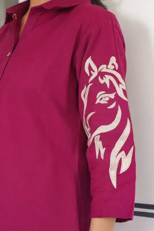 Step into effortless style with the Majestic Muse Cotton Flex Wine Co-ord Set. Crafted from soft, flexible cotton, this vibrant...