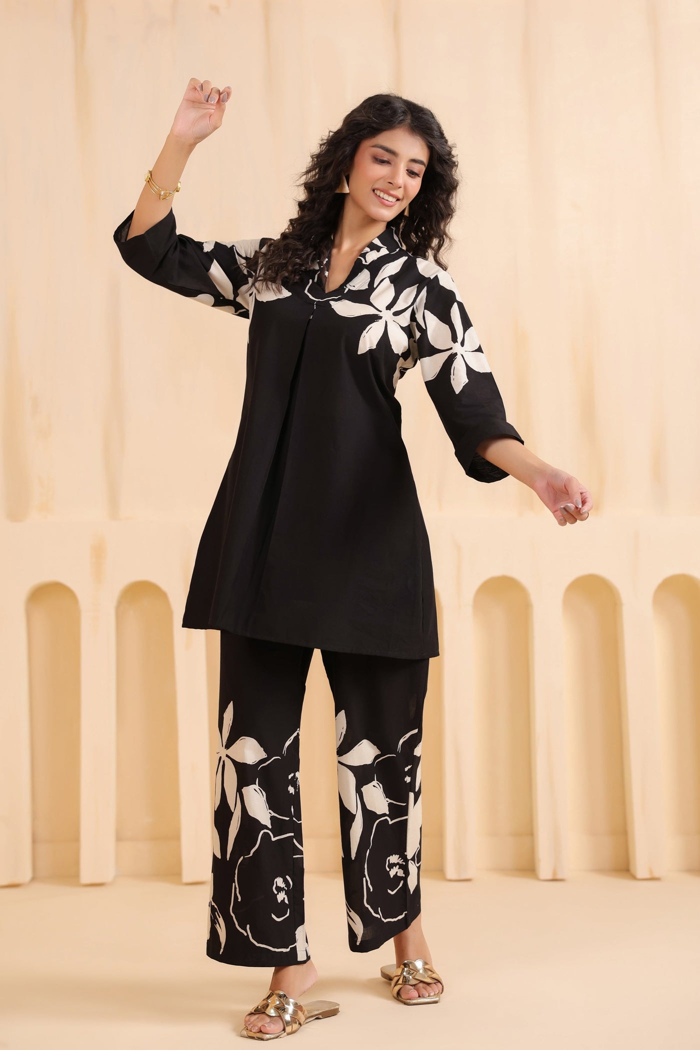 Embrace effortless style with our Noir Bloom Printed Cotton Co-ord Set—where comfort meets chic coordination. This versatile two-piece features a...