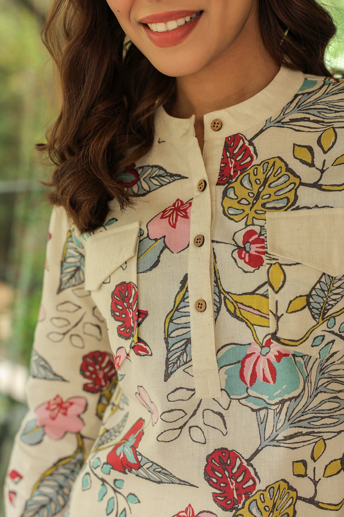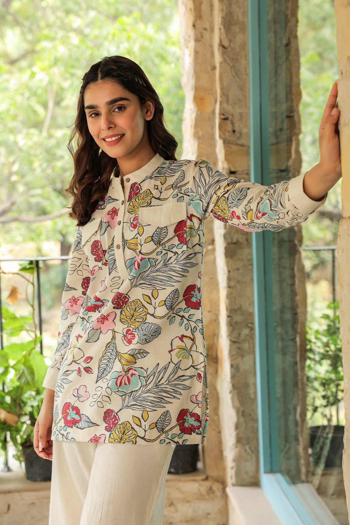 Opulent Ecru Cotton Flex Co-ord Set - S