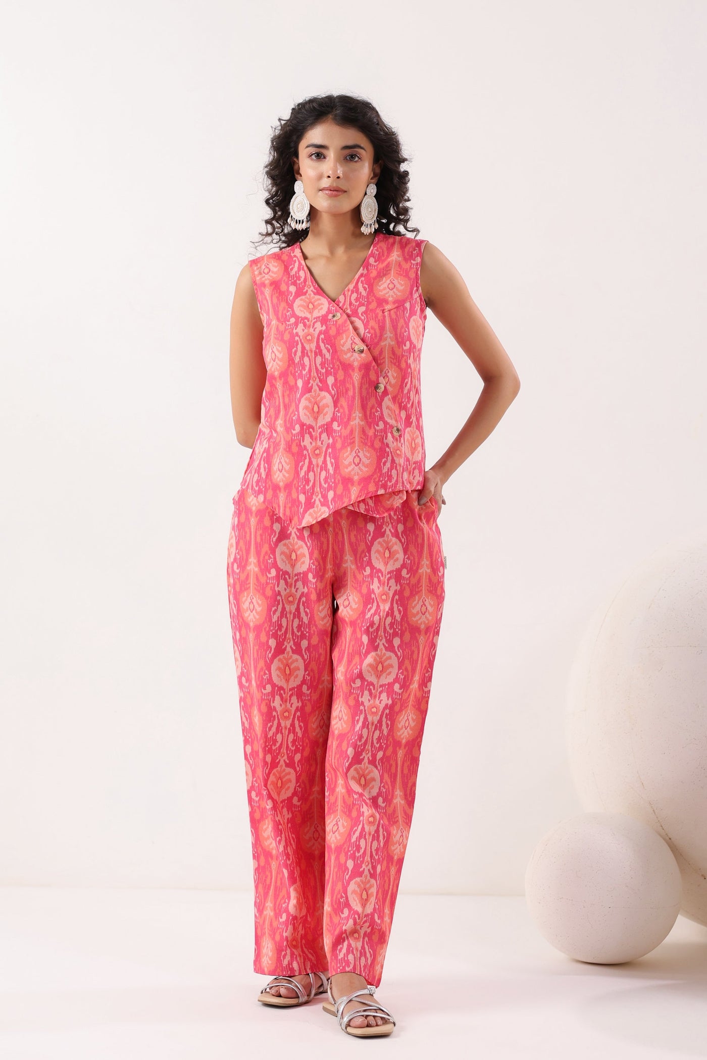Ornate Bloom Pink Cotton Flex Co-ord Set - XS