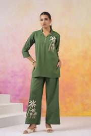Olive Palm Embroidered Cotton Co-ord Set