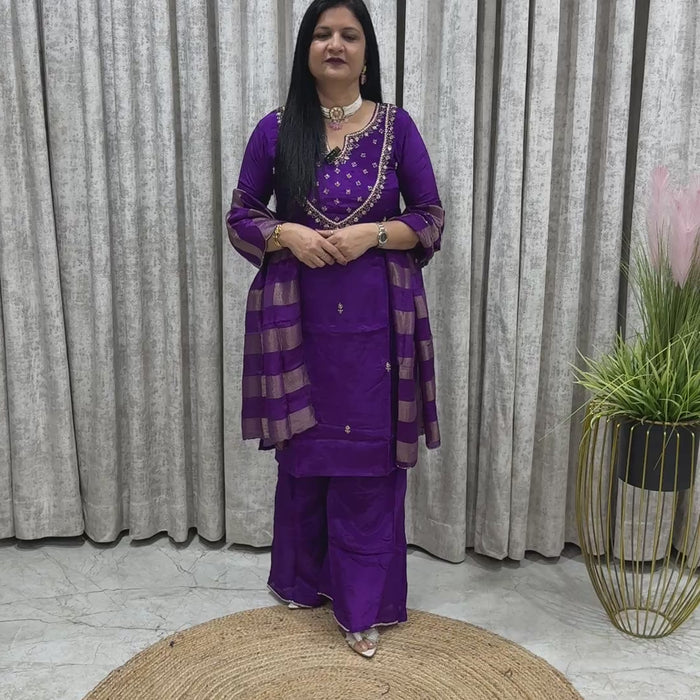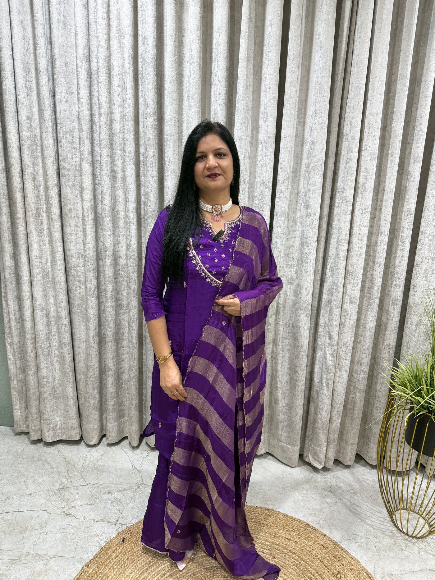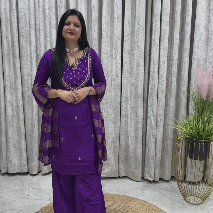 Pure Crepe Sharara Set with Organza Dupatta | Santoon Lining | Party & Festive Wear - M