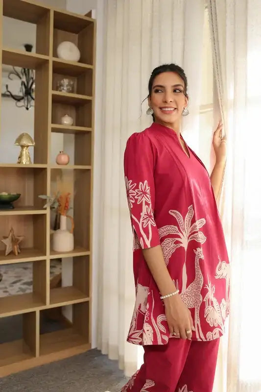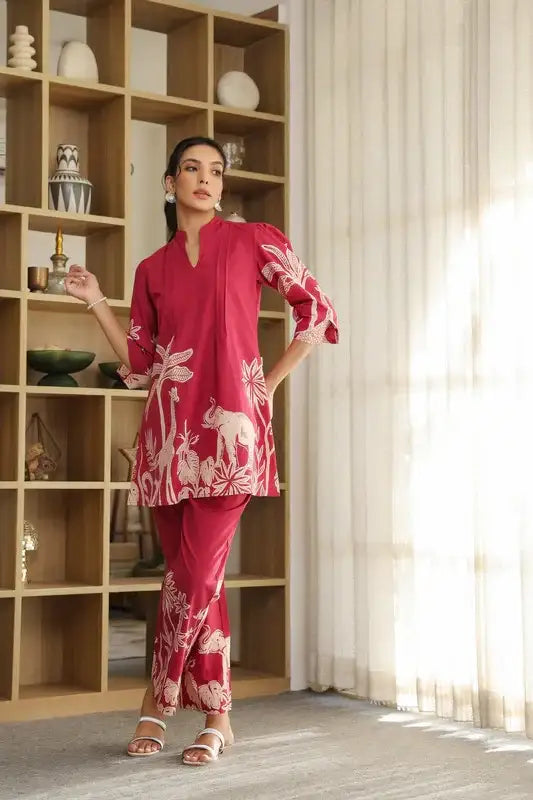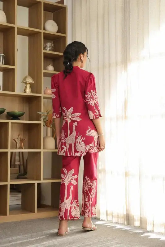 Get ready to enchant your style with our Red Forest Enchantment Cotton Co-ord Set! Crafted from premium cotton, this set...