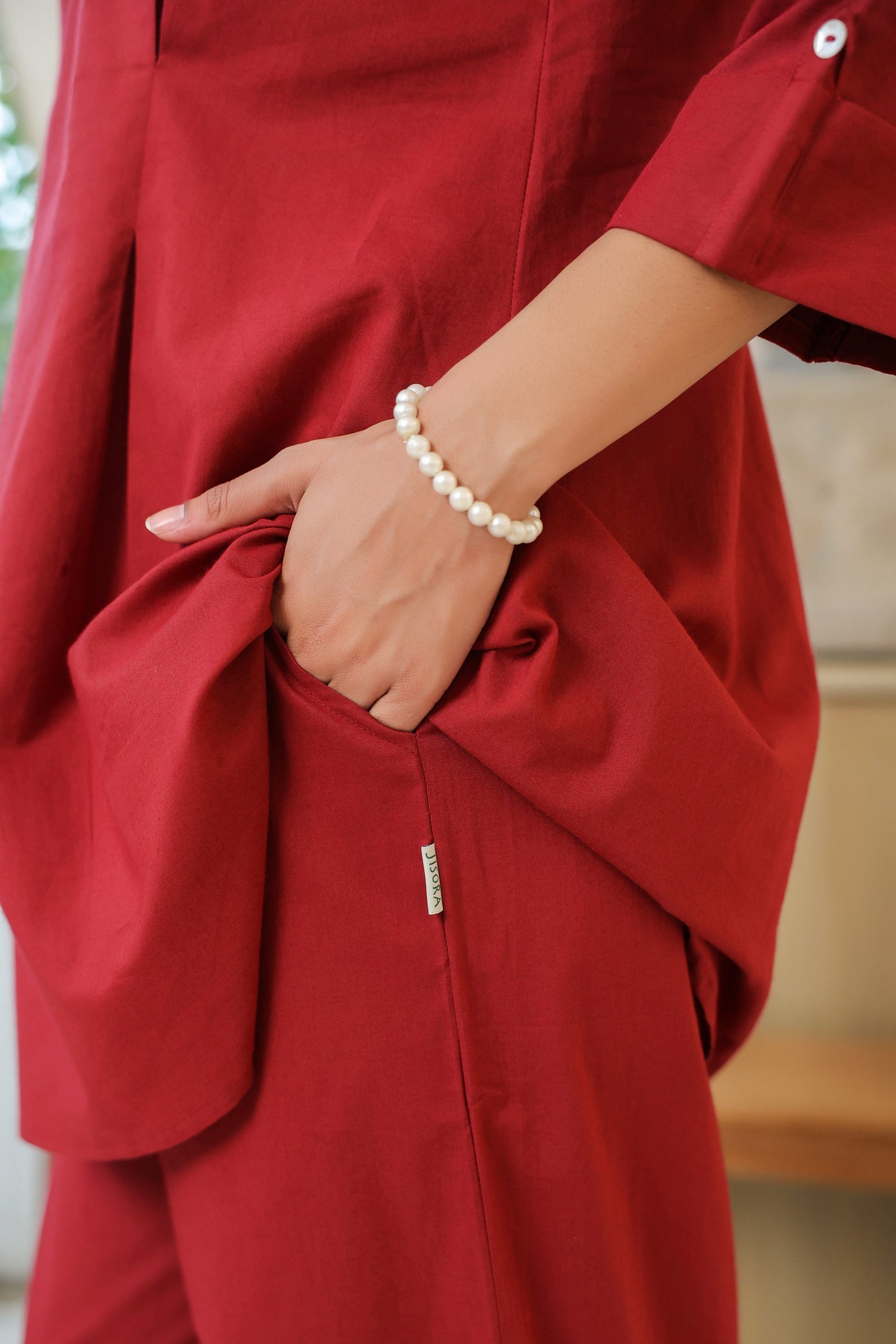 Crimson Ease Cotton Maroon Co-ord Set