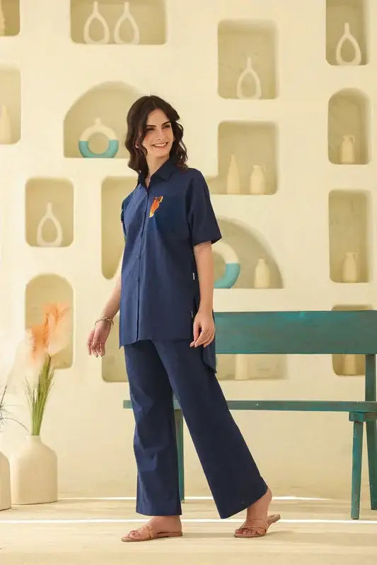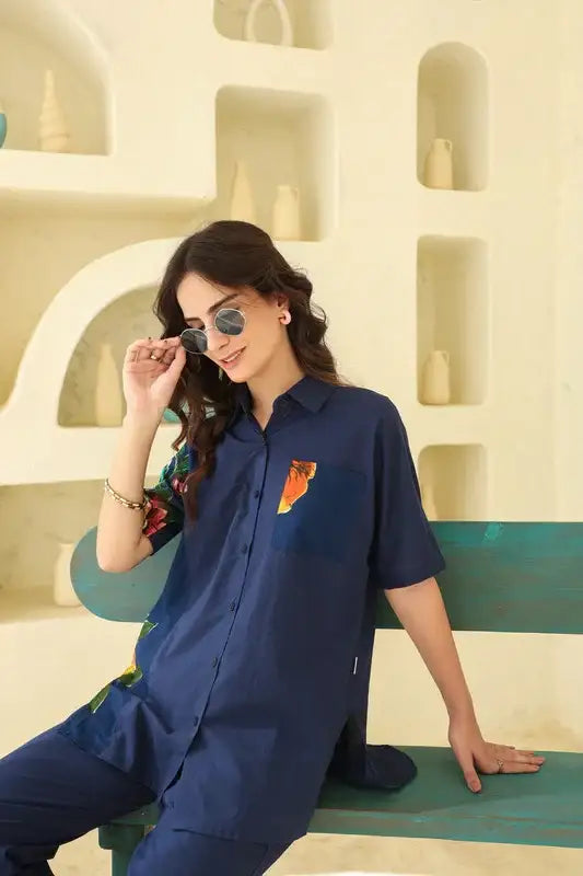 Get ready to feel the tropical vibes with our Sunlit Tropics Blue Cotton Co-ord Set. Made with high-quality cotton, this...