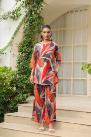 Brighten your wardrobe with the Sunset Hues Abstract Printed multicolour Co-ord Set. This lively set bursts with vibrant colors and...