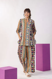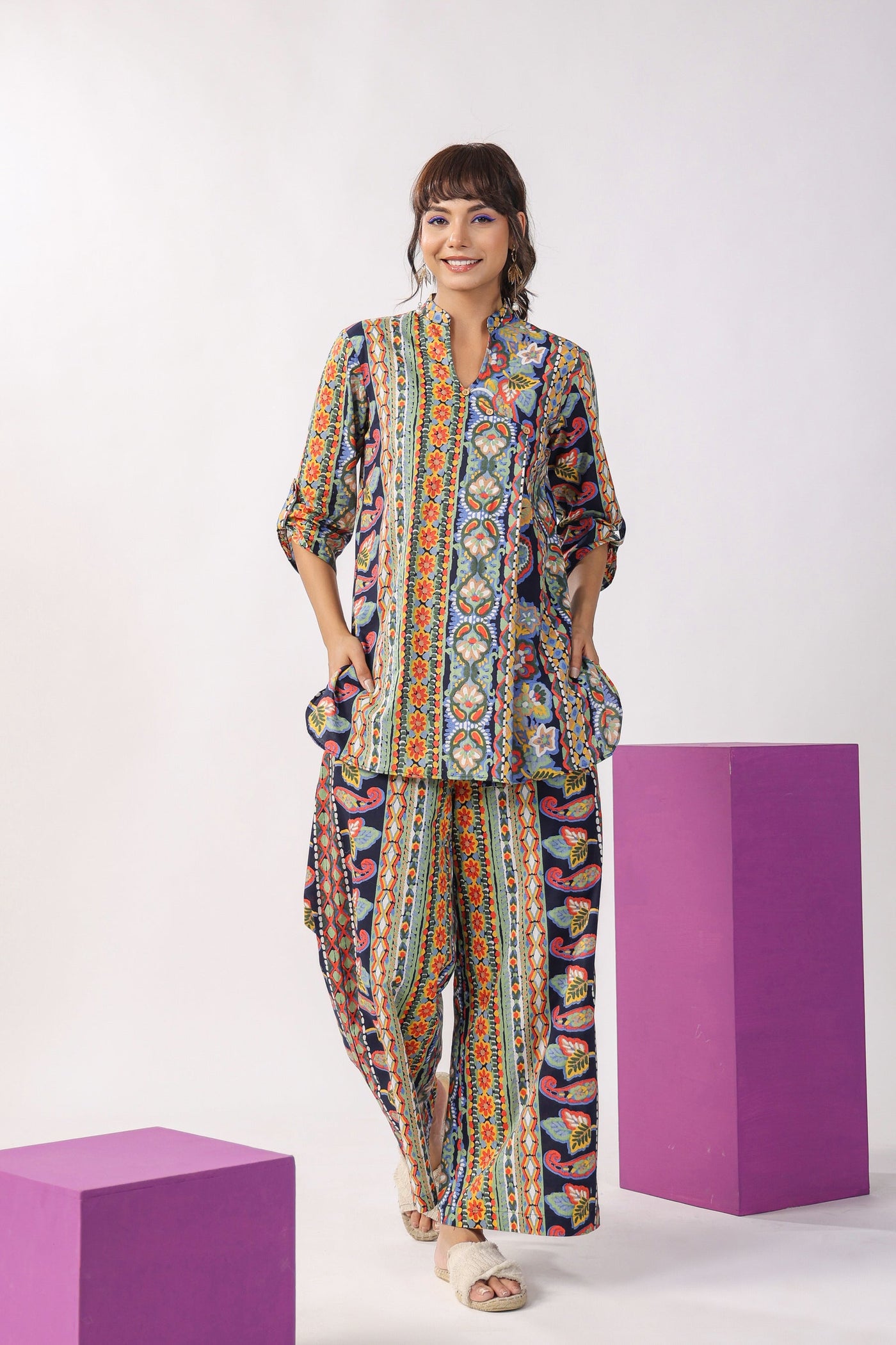 Traditional Paisley Motifs on Blue Cotton Co-ord Set